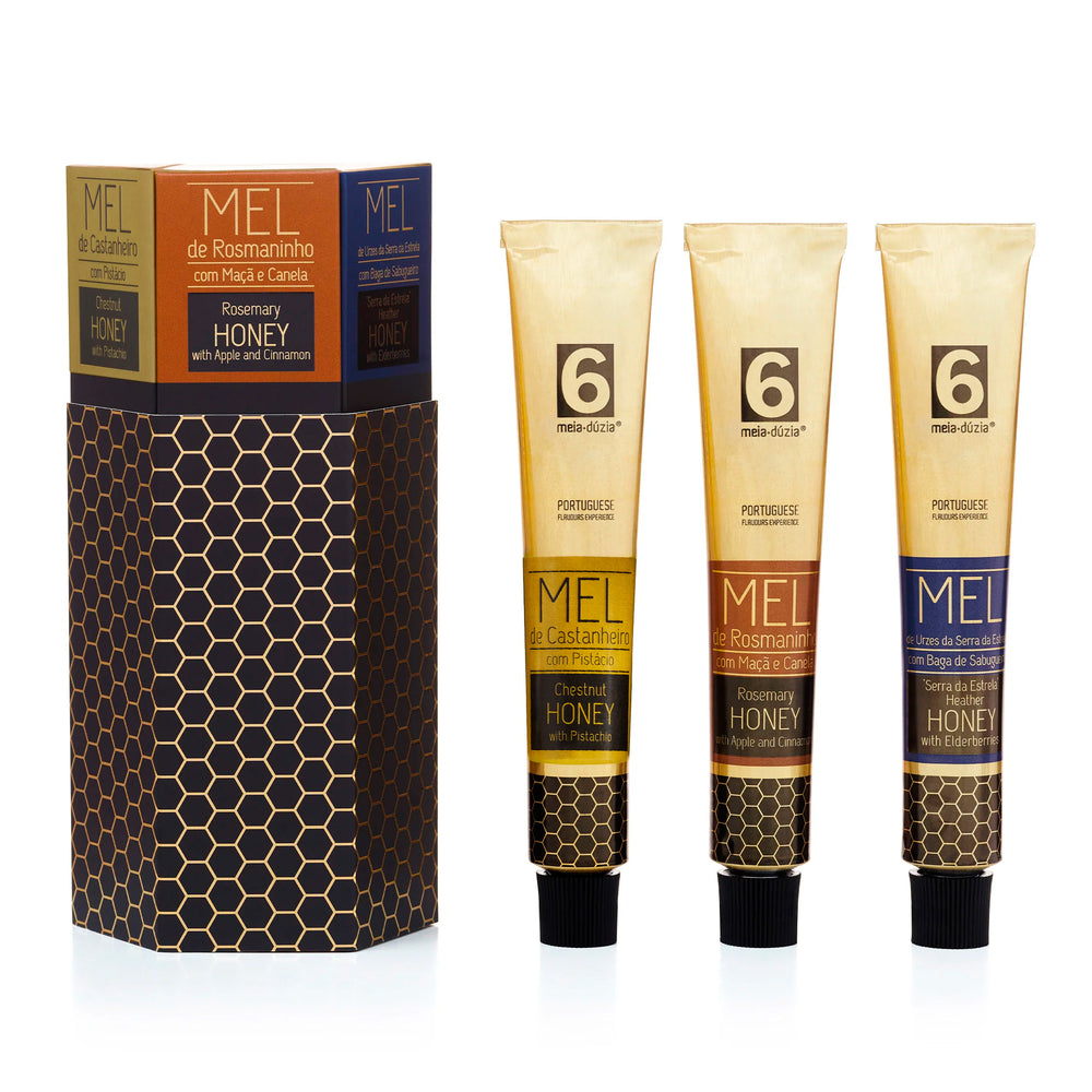 Different varieties of honey, with unique combinations and an original and luxurious packaging, make these sets an exclusive gourmet gift. This honey, natural, and of various types, from Heather honey, Organic multi-flower honey, Orange blossom honey, Rosemary honey, Eucalyptus honey. Use these flavours to create original, healthy recipes for appetizers, salads and desserts with health benefits.